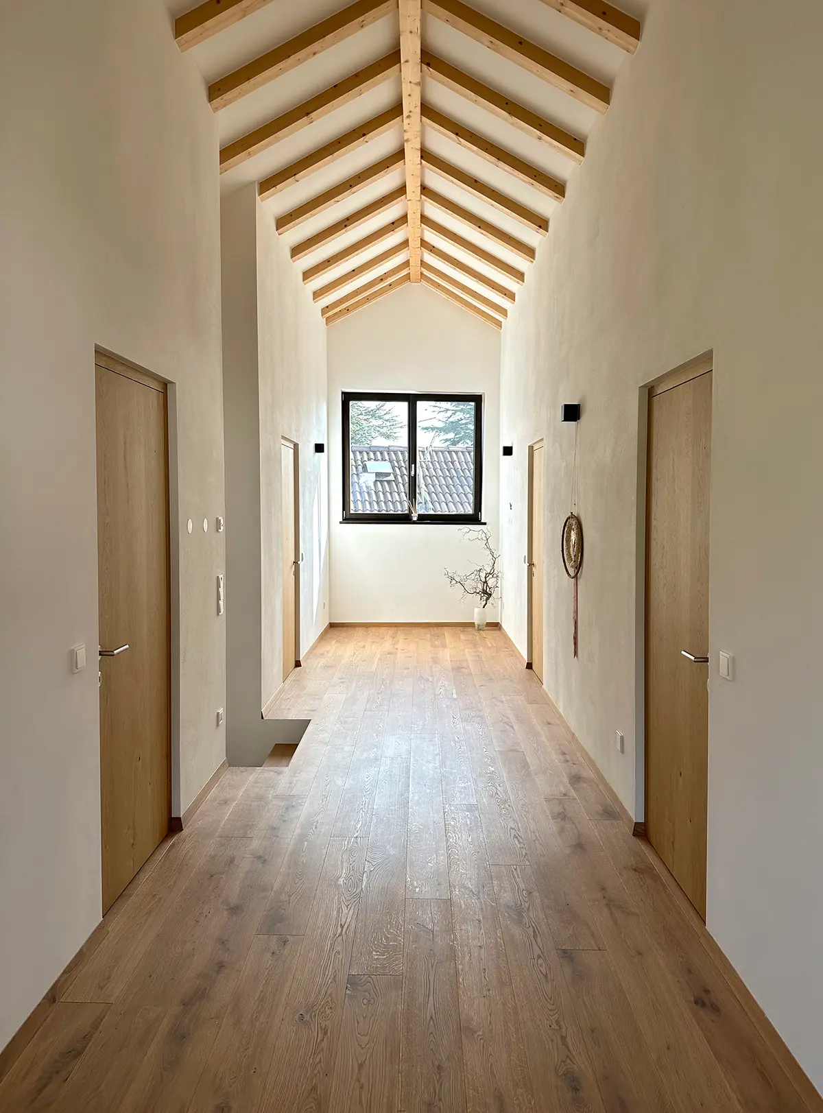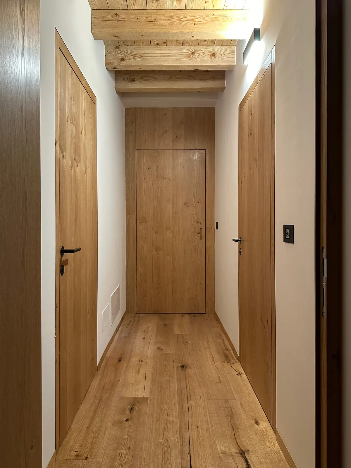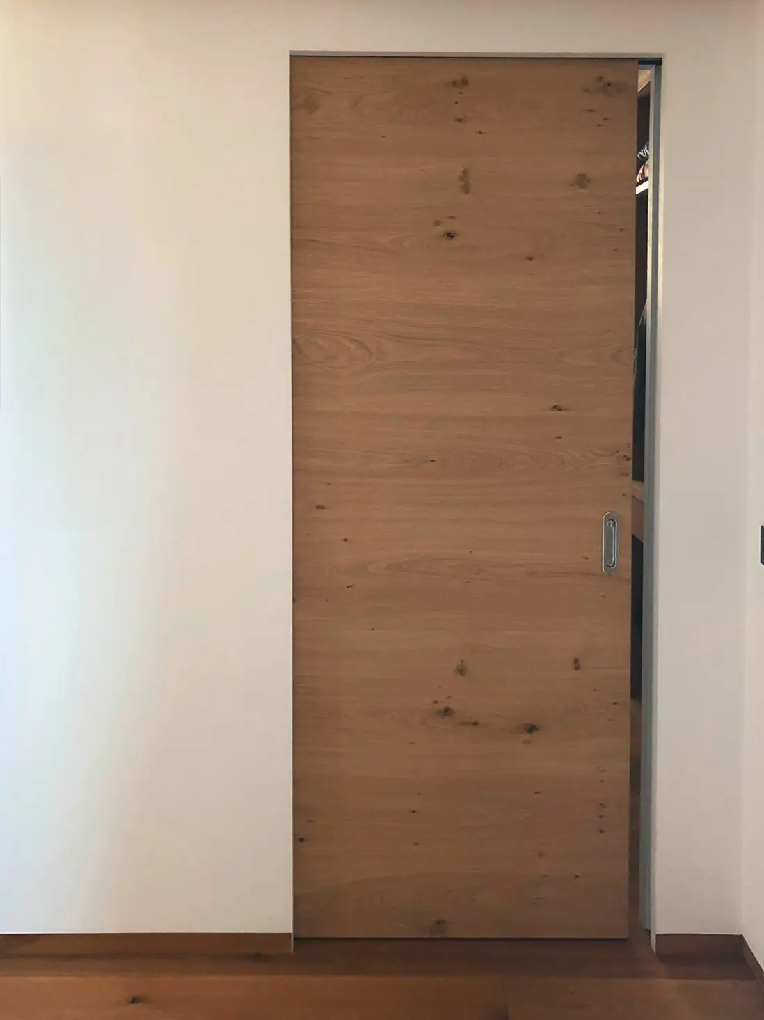 Unsere Schiebetüren fertigen wir millimetergenau nach Maß und montieren sie präzise. Ob als wandbündige Pocket Door oder außen laufende Variante – hochwertige Beschläge und Soft-Close garantieren flüsterleisen Lauf und Langlebigkeit.