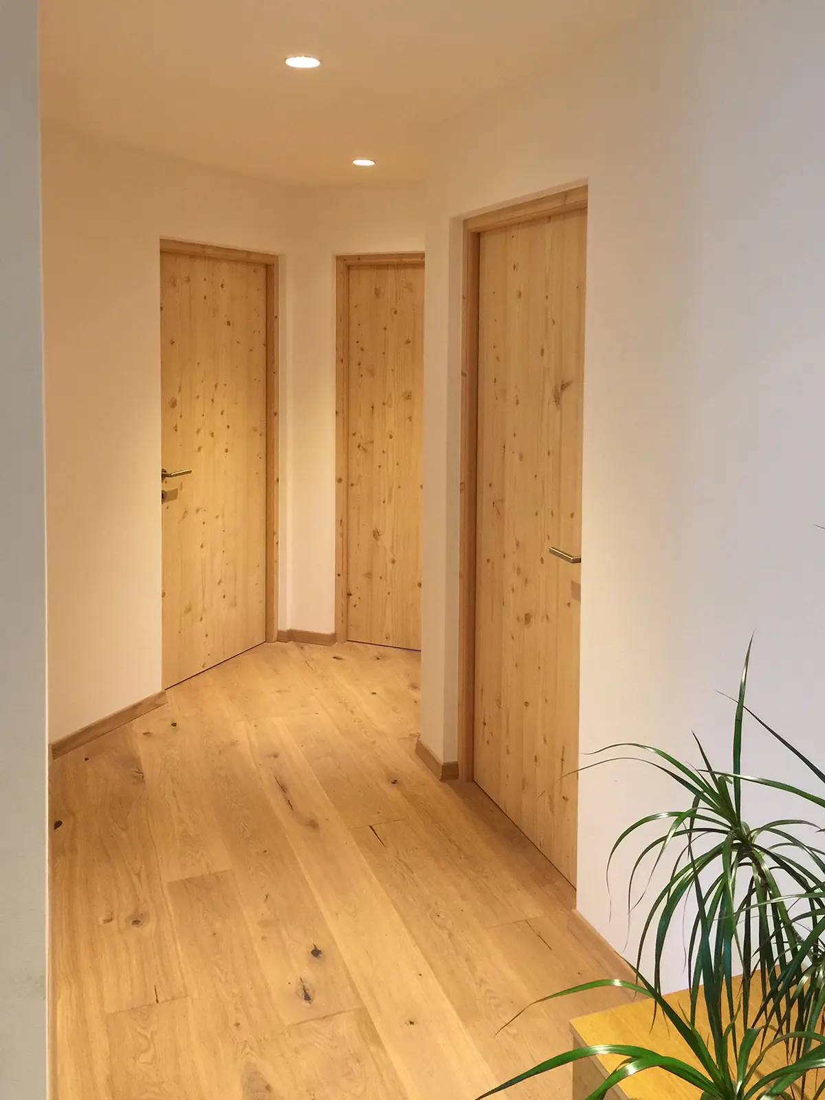 Massivholzinnentüren stehen für höchste Wohnatmosphäre und ausgezeichnete Wärmedämmung. Wählen Sie Ihre Wunschholzart – von Eiche über Ahorn bis Nuss. Auch bei der Oberflächengestaltung gibt es Gestaltungsfreiraum: glatt geschliffen oder leicht gebürstet. Ob klassisch, Rundbogen oder mit stilvollem Glaseinsatz. Auch bei Griffen, Drückern, Bändern und Beschlägen gibt es viel Gestaltungsfreiraum: Wir realisieren jede Form exakt nach Ihren Vorstellungen. Lassen Sie sich von uns beraten!